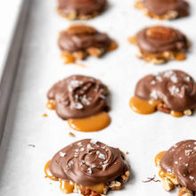 Nuestras tortugas se elaboran con chocolate 65% cacao, sin azúcares añadidos y endulzado con monk fruit. Cada pieza se rellena con dulce de leche a base de leche de coco sin endulzar, preparado en nuestra cocina, y se complementa con nueces seleccionadas.